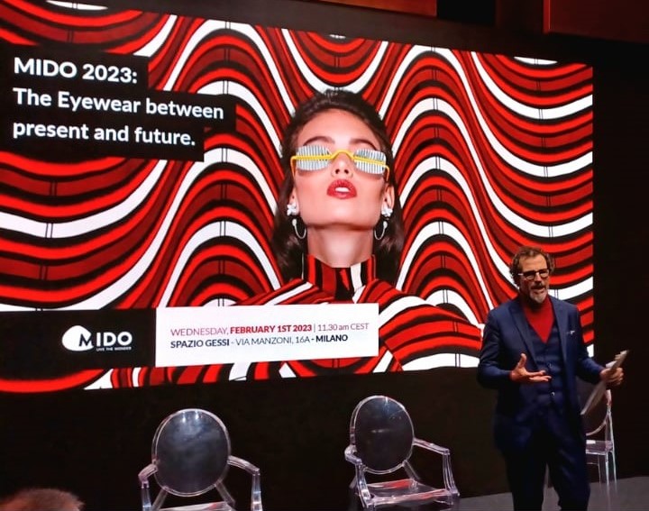 TAAC! (Taak!) Italian slang for “Here you are!”. A photo with Mr. G. Lanzoni, a famous actor who satirically and masochistically expresses the daily life of Milanese in a unique way!He is a quirky celebrity with over 400,000 followers on social media. The il Milanese imbruttito “Ugly Milanese (?)” starring him is very popular. This time, he is the moderator of MIDO2023, the world’s highest level trade fair for eyewear! He is not just a comical actor, but his sense of humor shines in the jokes that he occasionally puts in on serious talk shows.